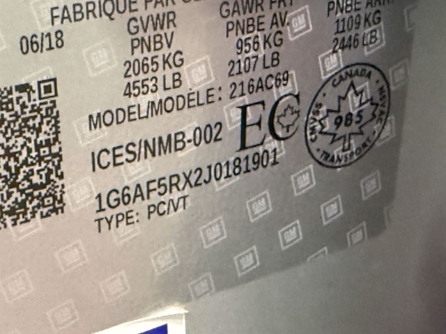 | VIN | 1G6AF5RX2J0181901 |