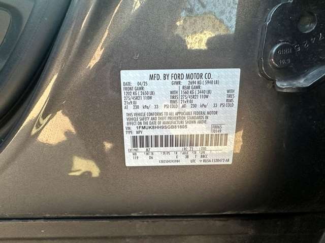 | VIN | 1FMUK8HH9SGB81805 |