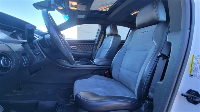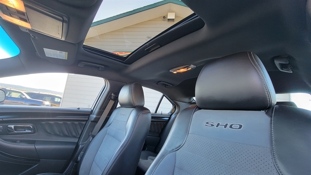 THIS IS A RARE FIND! 2016 FORD TAURUS SHO, 3.5L TWIN TURBO V6 WITH 365 HP, 6 AUTOMATIC TRANSMISSION WITH SST PADDLE SHIFTERS AND ALL WHEEL DRIVE! THIS SHO IS WELL EQUIPPED WITH POWER LOCKS, POWER WINDOWS, POWER ADJUSTING MIRRORS, MULIT-COUNTOURED LEATHER SEATS WITH HEATED AND COOLED FRONT SEATS, HEATED OUTBOARD REAR SEATS, SATELLITE RADIO, CD PLAYER, PHONE PORTS AND BLUETOOTH ON SONY SOUND SYSTEM. EQUIPPED WITH BLINDSPOT MONITORS, ADJUSTABLE PEDALS, ADAPTIVE CRUISE CONTROL, LANE KEEPING, POWER SUNROOF, HEATED LEATHER STEERING WHEEL, ALLOY WHEELS, ALL-WEATHER MATS, 360 BACKUP CAMERA, REVERSE SENSORS, NAVIGATION, REMOTE START AND MUCH MORE! SUCH A SHARP RIDE THAT HAS POWER AND HANDLING! CALL(605)642-1900 TODAY OR STOP IN FOR A TEST DRIVE!