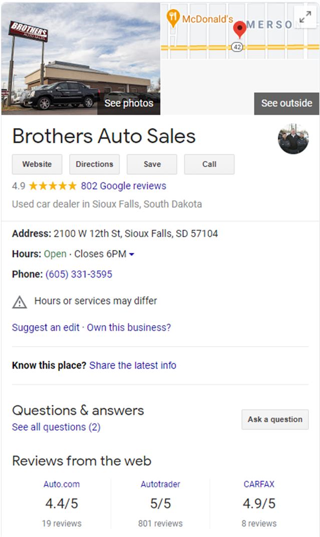 Brothers Auto Sales Has Been Serving South Dakota, Iowa, Minnesota, Nebraska and The Surrounding Area For Almost 30 Years! Please Contact Us For Your No Hassle Experience and Save Time In The Store By Starting The Process Online. We Look Forward To Taking Care Of Your Car Needs Today and In The Future! Free Carfax Report! Financing (WAC) and Vehicle Service Contract Options Available!