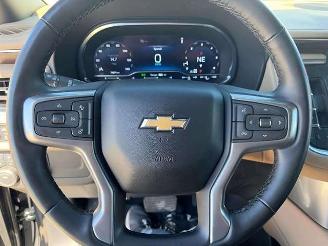 Preferred Equipment Group 1LZ: Bright Front and Rear Door Sill Plates; 20" X 9" Polished Aluminum Wheels; Memory Settings; Perforated Leather Seat Trim; Remote Start; 3rd Row 60/40 Power-Folding Split-Bench Seat; Safety Alert Seat; Chrome Door Handles with Body-Color Strip; Hill Descent Control; Heated Steering Wheel; LED Daytime Running Lamps; Rear Cross Traffic Alert; Driver and Front Outboard Passenger Airbags; Wireless Charging; Front High-Back Reclining Bucket Seats; Universal Home Remote; Color-Keyed Carpeting Floor Covering; Heated 2nd Row Outboard Seats; Hands-Free Rear Power Programmable Liftgate; Chevrolet Infotainment 3 Premium System Radio; 2-Speed Active Electronic Autotrac Transfer Case; 1st and 2nd Row Color-Keyed Carpeted Floor Mats; Enhanced Driver Information Center; Floor Console; Lane Change Alert with Side Blind Zone Alert; Chrome Mirror Caps; Dual Exhaust System; SiriusXM with 360L; Wrapped Steering Wheel; Power Tilt and Telescopic Steering Column; Bose 10-Speaker Centerpoint Surround Audio System Feature; Magnetic Ride Control Suspension; Auto-Dimming Inside Rearview Mirror; Power Release 2nd Row Bucket Seats; Outside Heated Power-Adjustable Mirrors; 275/60R20SL All-Season Blackwall Tires. **Equipment listed is based on original vehicle build and subject to change. Please confirm the accuracy of the included equipment by calling the dealer prior to purchase.**