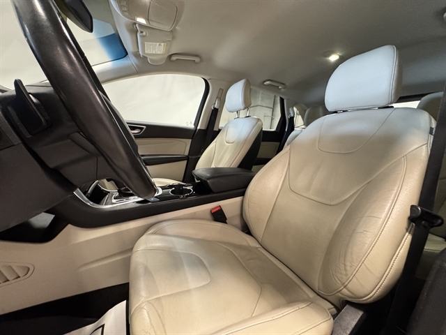 ***CLEAN CARFAX***, **NAVIGATION**, **LOCAL TRADE IN**, **LEATHER**, BLUETOOTH, **REMOTE START**, **Back-Up Camera**, **POWER LIFTGATE**, **HEATED SEATS**, Edge Titanium, EcoBoost 2.0L I4 GTDi DOHC Turbocharged VCT, 6-Speed Automatic, AWD, Ingot Silver Metallic, Dune w/Leather-Trimmed Heated Bucket Seats, 4-Wheel Disc Brakes, ABS brakes, Air Conditioning, BLIS Blind Spot Information System, Compass, Equipment Group 300A, Exterior Parking Camera Rear, Front dual zone A/C, Fully automatic headlights, Garage door transmitter, Heated door mirrors, Heated front seats, Leather-Trimmed Heated Sport Bucket Seats, Memory seat, Navigation System, Outside temperature display, Panic alarm, Power door mirrors, Power driver seat, Power Liftgate, Power passenger seat, Radio: AM/FM Stereo w/Single CD/Navigation, Rear Parking Sensors, Remote keyless entry, Remote Start System, Security system, Speed control, Split folding rear seat, Steering wheel mounted audio controls, SYNC w/MyFord Touch, Technology Package, Traction control, Wheels: 19`` Aluminum Premium Painted Luster Nickel.