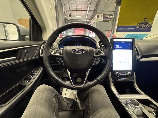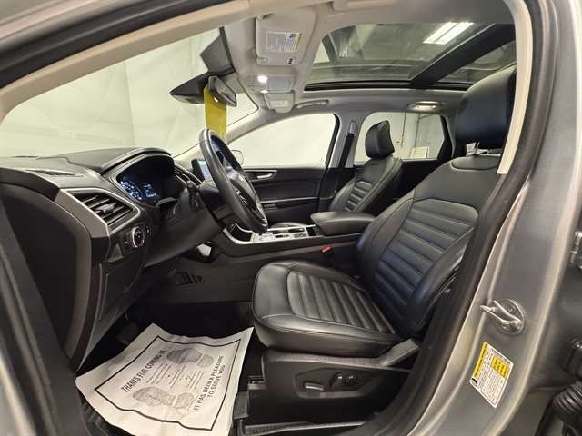 **ONE OWNER**, ***CLEAN CARFAX***, **NAVIGATION**, **LEATHER**, **MOONROOF**, BLUETOOTH, ALL BOOKS AND KEYS, **REMOTE START**, **Back-Up Camera**, **POWER LIFTGATE**, **ADAPTIVE CRUISE CONTROL**, **HEATED SEATS**, **APPLE CARPLAY/ ANDROID AUTO**, Edge SEL, 4D Sport Utility, EcoBoost 2.0L I4 GTDi DOHC Turbocharged VCT, AWD, Iconic Silver Metallic, Ebony w/ActiveX-Trimmed Heated Sport Bucket Seats, 4-Wheel Disc Brakes, ABS brakes, Adaptive Cruise Control w/Stop & Go, Air Conditioning, Auto High-beam Headlights, Compass, Connected Built-In Navigation, Convenience Package, Equipment Group 201A, Evasive Steering Assist, Ford Co-Pilot360 Assist+, FordPass Connect, Four wheel independent suspension, Front Bucket Seats, Front dual zone A/C, Fully automatic headlights, Heated door mirrors, Heated front seats, Lane Centering, Leather-Wrapped Steering Wheel, Navigation System, Outside temperature display, Panoramic Vista Roof, Perimeter Alarm, Power door mirrors, Power driver seat, Power Liftgate, Power passenger seat, Radio: AM/FM Stereo/MP3 Capable, Rear Parking Sensors, Remote keyless entry, Remote Start System, SiriusXM w/360L, Split folding rear seat, Steering wheel mounted audio controls, SYNC 4A w/Enhanced Voice Recognition, Traction control, Universal Garage Door Opener (UGDO), Wheels: 18`` Sparkle Silver-Painted Aluminum, Wireless Charging Pad.