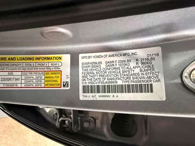 | VIN | 1HGCV1F55JA089939 |