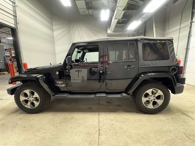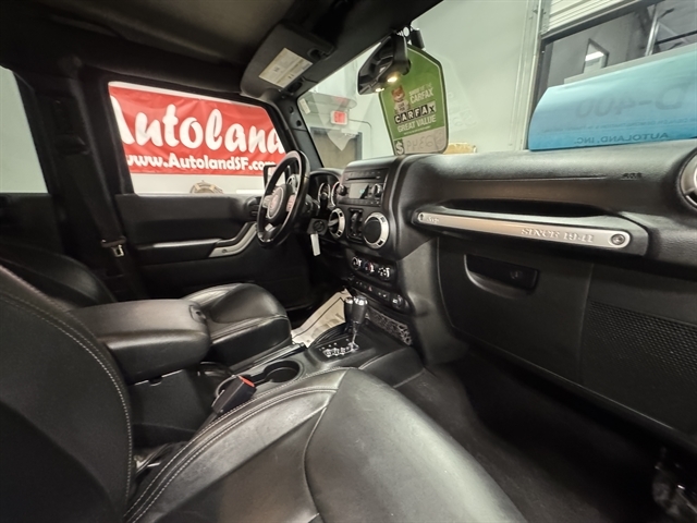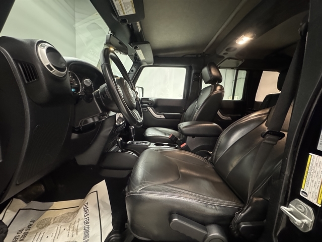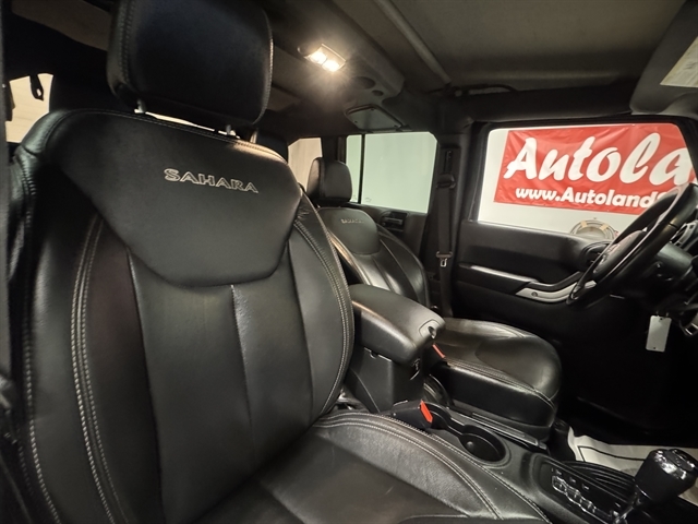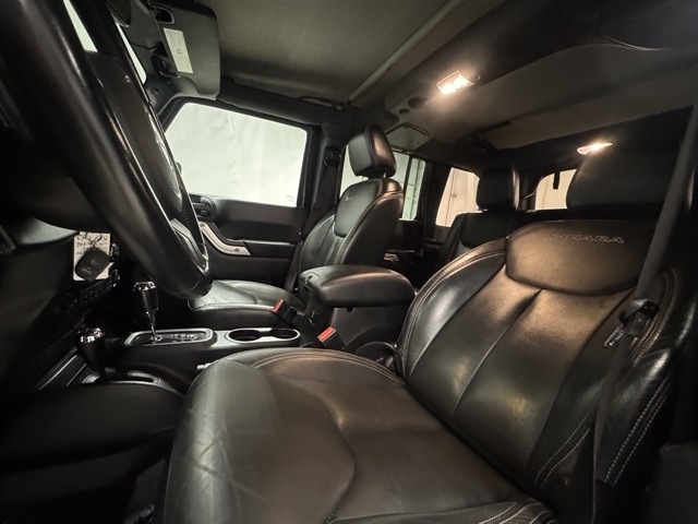 **LOCAL TRADE IN**, **LEATHER**, ALL BOOKS AND KEYS, **HEATED SEATS**, Wrangler JK Unlimited Sahara, 4D Sport Utility, 3.6L V6 24V VVT, 5-Speed Automatic, 4WD, Black Clearcoat, Black Leather, 18`` x 7.5`` Polished Satin Carbon Wheels, 4-Wheel Disc Brakes, 8 Speakers, ABS brakes, Air Conditioning, AM/FM radio: SiriusXM, Compass, Front fog lights, Fully automatic headlights, Heated Front Seats, Leather Trimmed Bucket Seats, Outside temperature display, Power door mirrors, Power windows, Remote keyless entry, Security system, Speed control, Split folding rear seat, Steering wheel mounted audio controls, Sunrider Soft Top, Traction control.