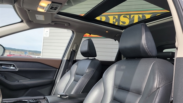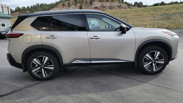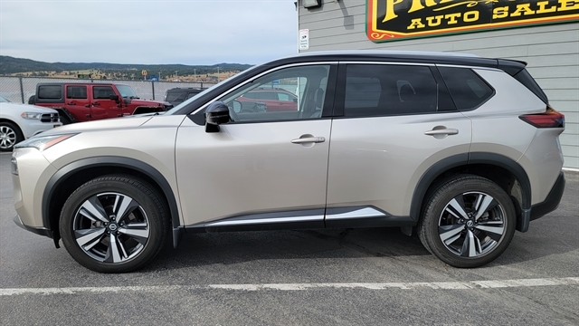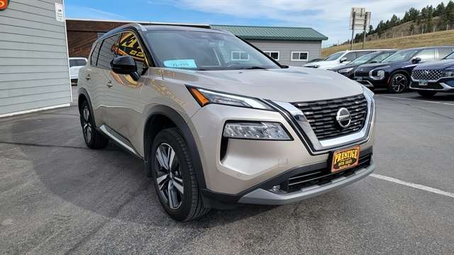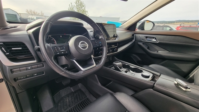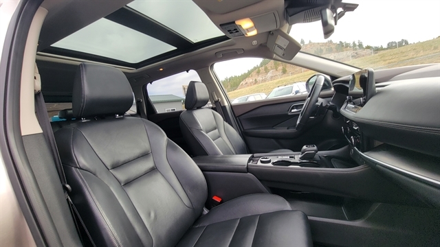 MUST SEE THIS BEAUTIFUL 2021 NISSAN ROGUE SL WITH 2.5L 4CYL GAS ENGINE, AUTOMATIC TRANSMISSION AND ALL-WHEEL DRIVE! THIS ROGUE HAS A STUNNING CHAMPAGNE SILVER METALLIC EXTERIOR WITH BLACK INTERIOR WITH CHOCOLATE ACCENTS FOR A SUPERIOR LUXURY FEEL! EQUIPPED WITH POWER LOCKS, POWER WINDOWS, LEATHER INTERIOR WITH POWER SEATS WITH MEMORY POSITIONS, HEATED FRONT SEATS, SATELLITE RADIO, BLUETOOTH CONNECTION, APPLE CARPLAY, ANDROID AUTO WITH A BOSE PREMIUM SOUND SYSTEM! PREMIUM TECH FEATURES ADAPTIVE CRUISE CONTROL, LANE KEEP ASSIST WITH LANE CHANGE ALERT, BLIND SPOT AWARENESS, FORWARD COLLISION MITIGATION, PANORMAIC SUNROOF, POWER LIFTGATE, HEATED STEERING WHEEL, 360 BACKUP CAMERA WITH REVERSE SENSORS, NAVIGATION, AND REMOTE START! THIS STUNNING NISSAN ROGUE COMES EQUIPPED WITH ALLOY WHEELS, ALL-WEATHER MATS, REMOTE KEYLESS ENTRY AND DRIVE MODES! CALL (605)642-1900 TODAY OR STOP IN FOR A TEST DRIVE!
